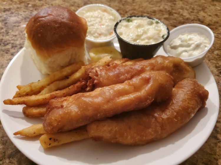 - Fish – cod, battered and fried, moist, taste good