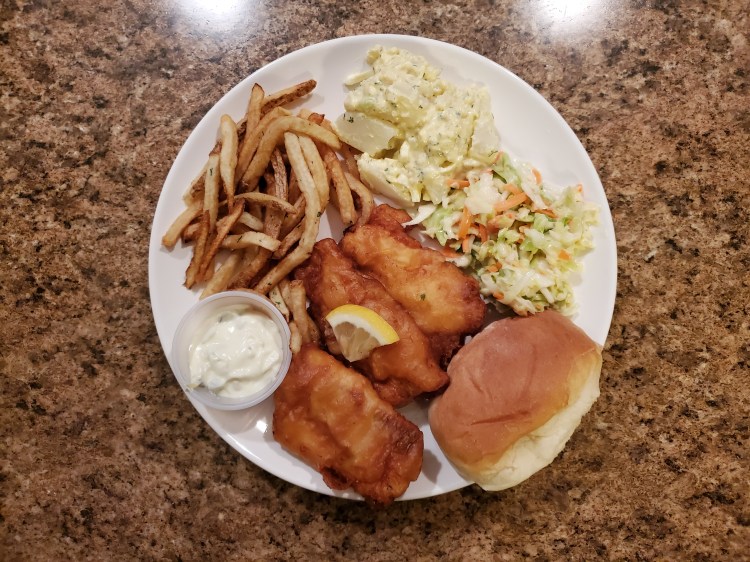 - Fish – haddock, battered and fried, smooth coating taste good