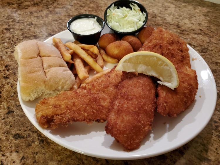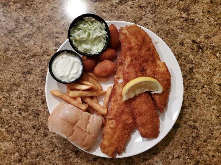 - Fish – haddock, breaded and fried, crispy, taste great