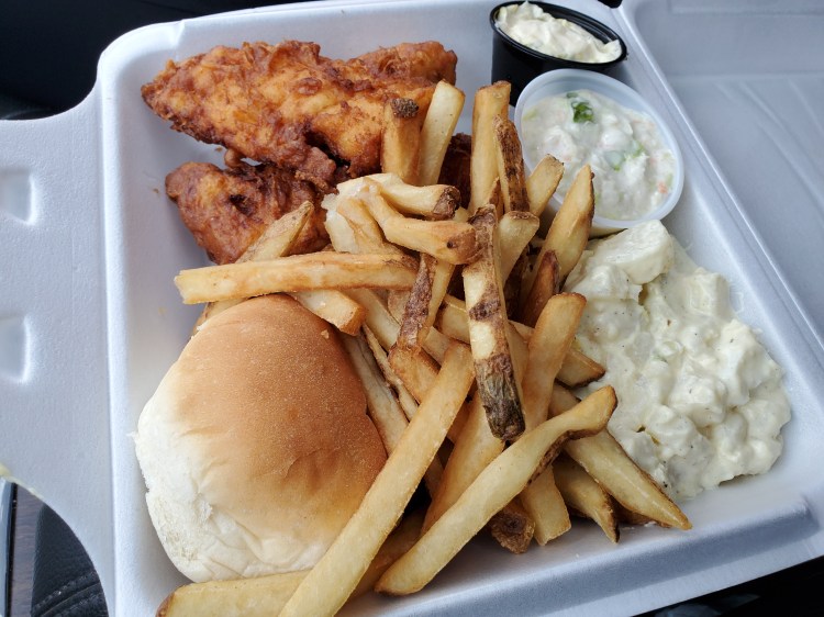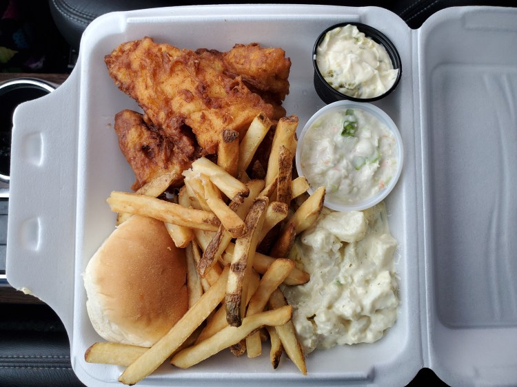 - Fish – haddock, battered and fried, juicy, taste great