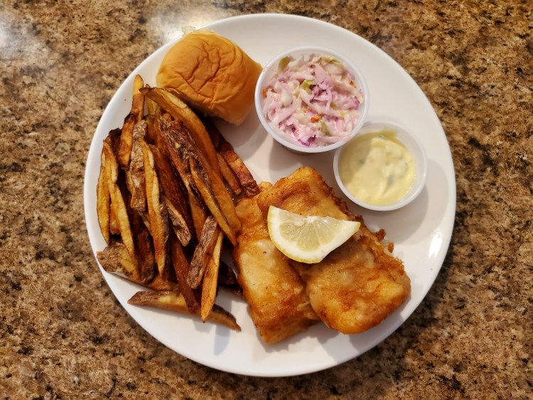 - Fish – haddock, battered and deep fried, flaky, taste good