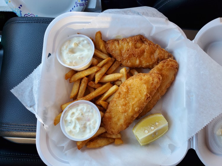 Two Fat Guys Bar and Grill in Marenisco, MI – Featuring Cod as the fish on menu for Friday night’s special, I rate it 3 out of 5 stars because the overall meal taste good.