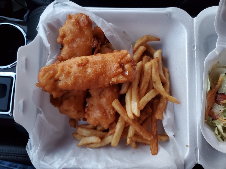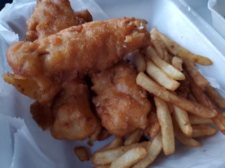 - Fish – cod, beer battered and fried, taste good