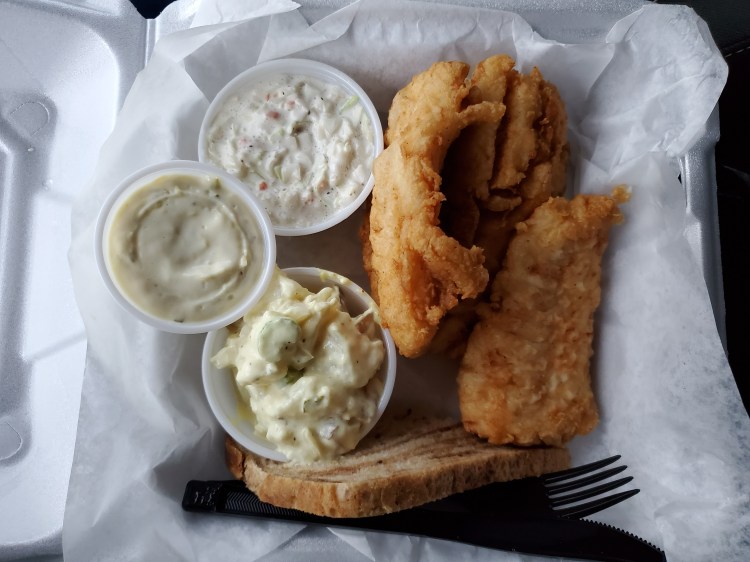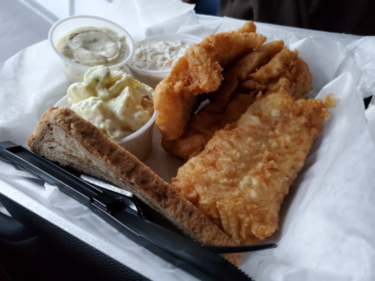 - Fish – haddock, light batter and fried, taste good