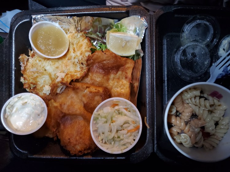 - Fish – haddock, batter and fried, thick filet, taste great