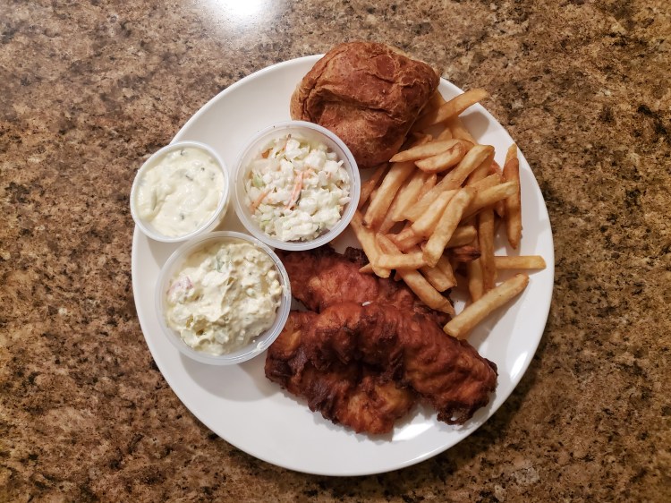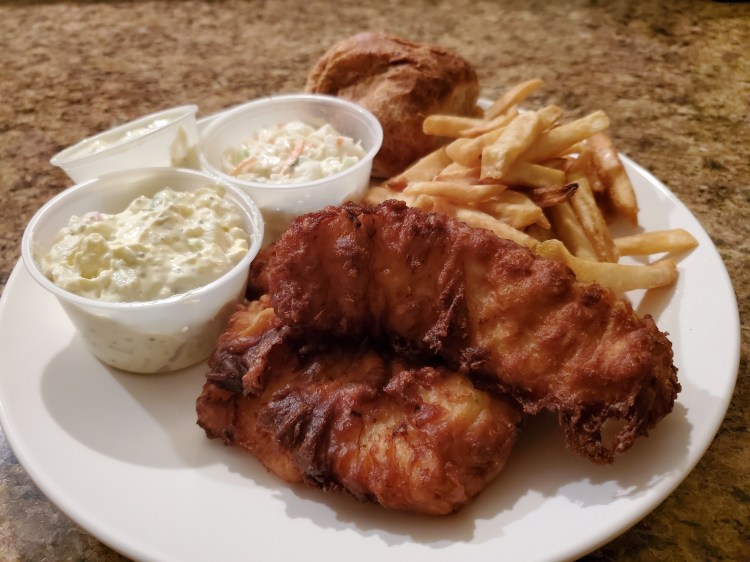 - Fish – haddock, batter and fried, taste fine