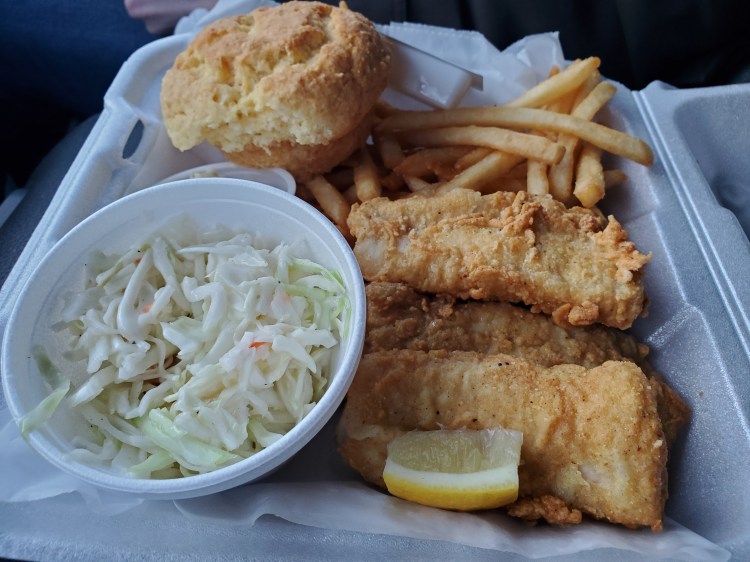 - Fish – haddock, batter and fried, taste good