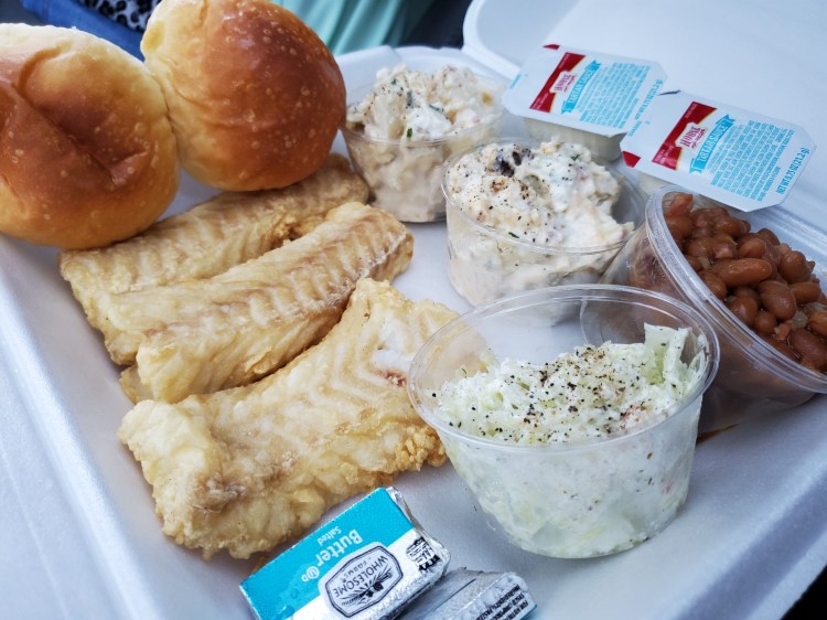 - Fish – cod, lightly coated and deep fried