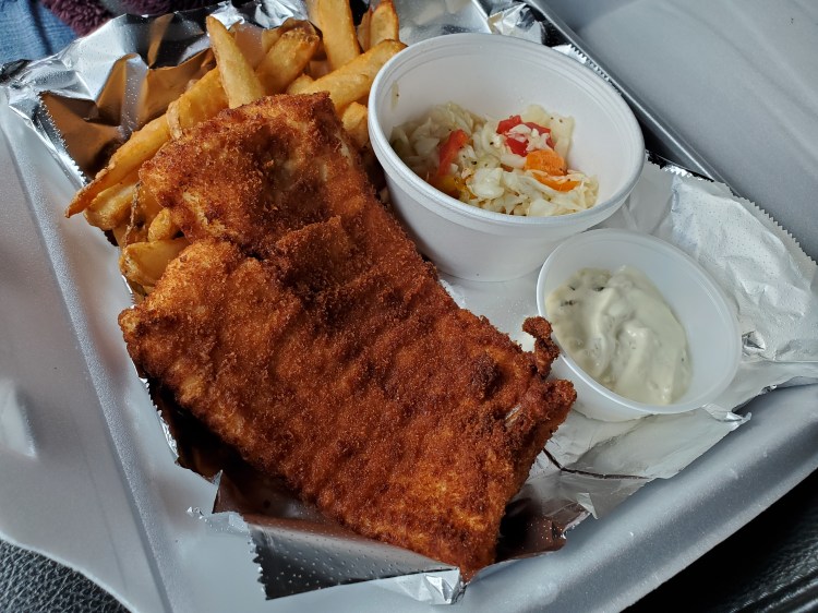 - Fish – cod, lightly coated and deep fried