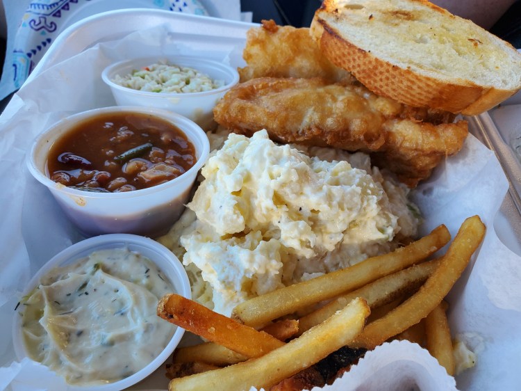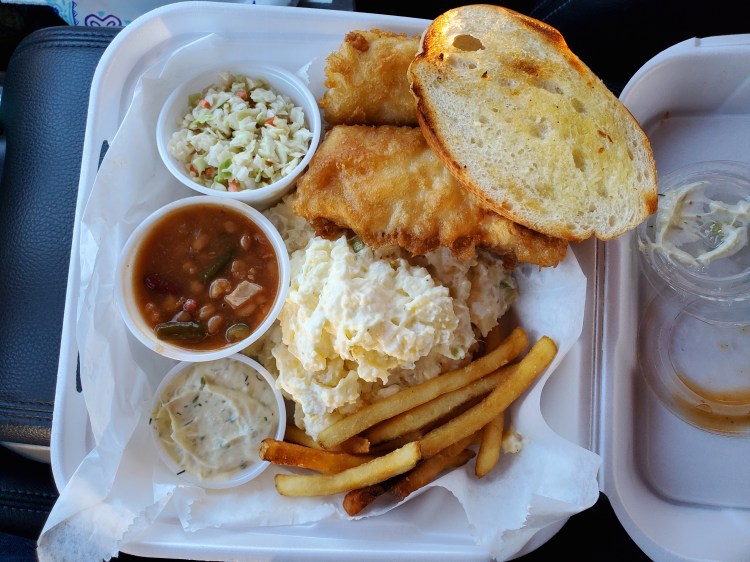 - Fish – cod, beer battered and fried, taste good